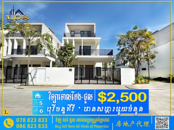 6BED, 7BATH QUEEN VILLA CORNER FOR RENT AT CHIP MONG-SEMI FURNISHED