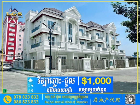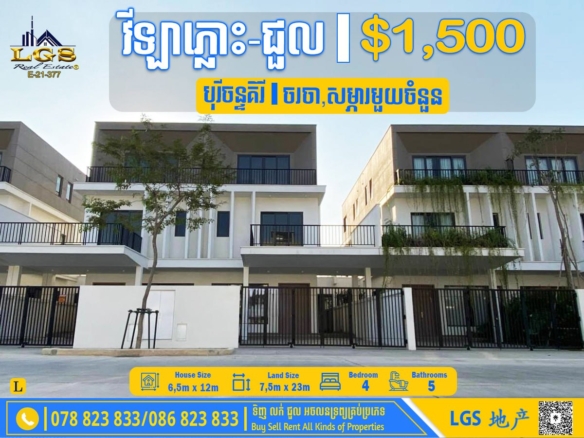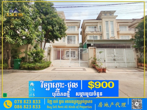4BED, 5BATH FLAT HOUSE FOR RENT AT BOREY TUEK THLA-SOME FURNISHED