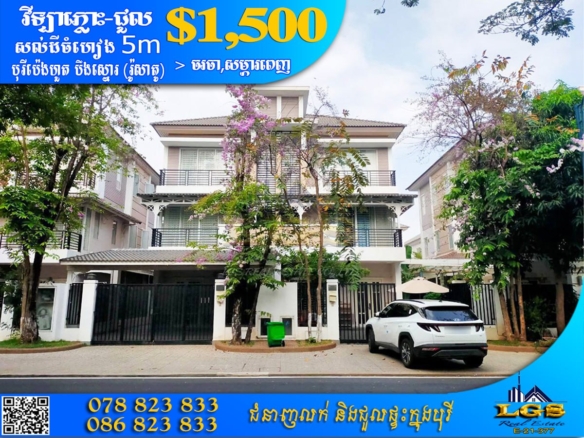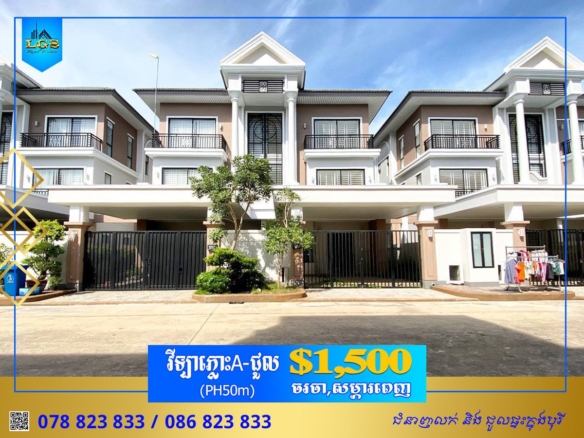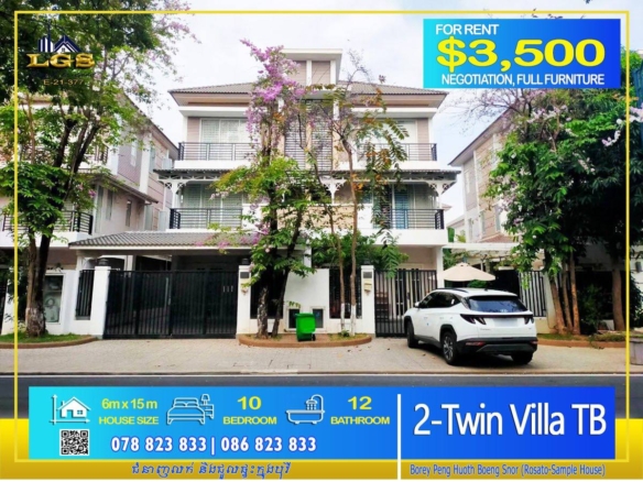 TWIN VILLA FOR RENT AT BOREY PENG HOUTH STREET 50m