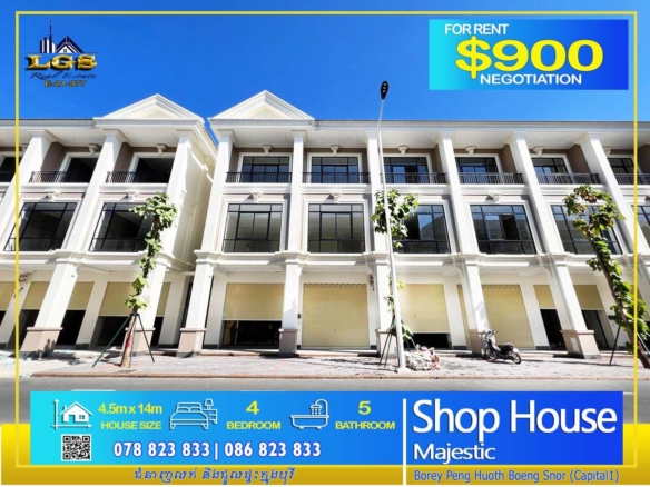 SHOPHOUSE MAJESTIC FOR RENT AT BOREY PENG HOUTH BEING SNOR