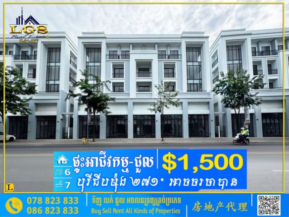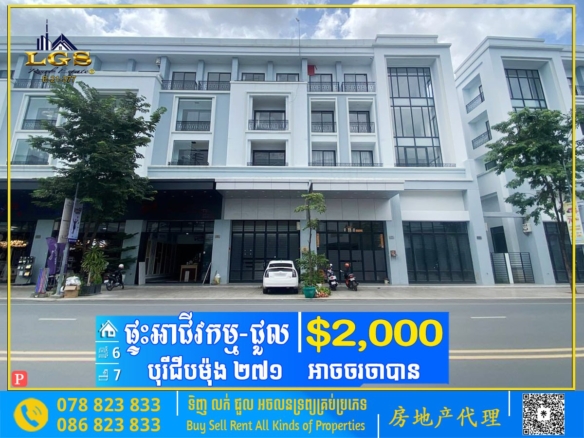 6BED, 7BATH SHOP HOUSE FOR RENT AT BOREY CHIP MONG 271