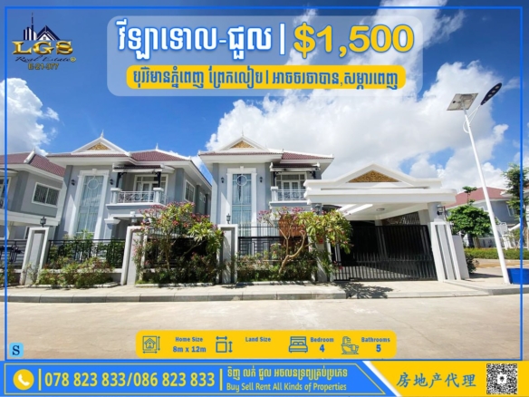 SINGLE VILLA FOR SALE AND RENT AT SANGKAT PREAEK LIEB
