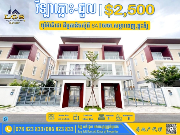 TWIN VILLA FOR SALE AND RENT AT BOREY PHNOM PENH PARK