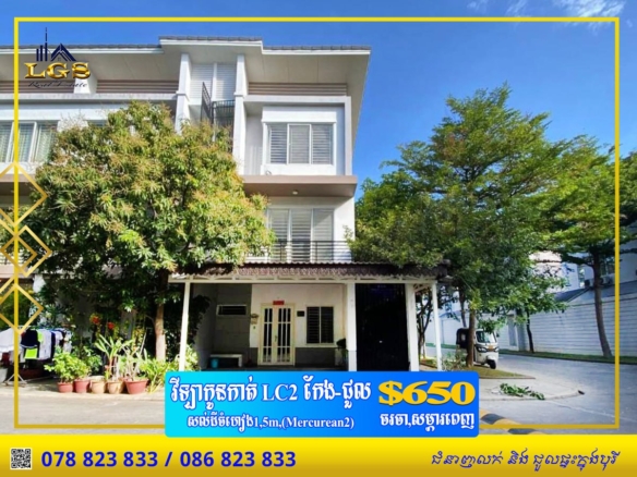 LINK HOUSE LC2 CORNER FOR RENT AT BOREY PENG HUOTH-FULLY FURNISHED