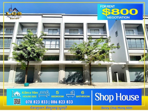 SHOPHOUSE FOR RENT AT BOREY CHIPMONG LAND MARK, STREET 271