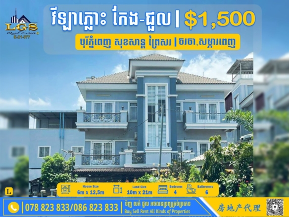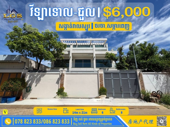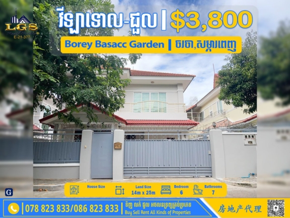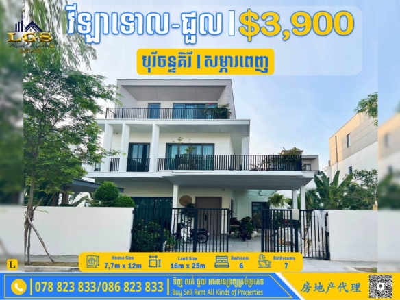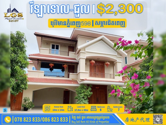 6BED, 7BATH SINGLE VILLA FOR RENT AT BOREY CHANKIRI-FULLY FURNISHED