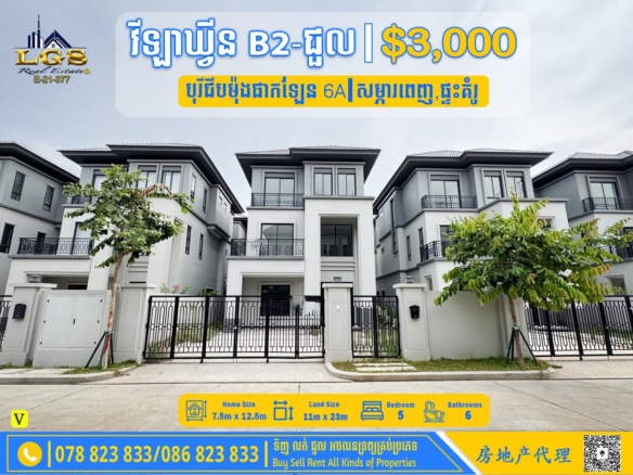 TWIN B VILLA FOR RENT AT BOREY PENG THE STAR MERAGADEN STREET 50M