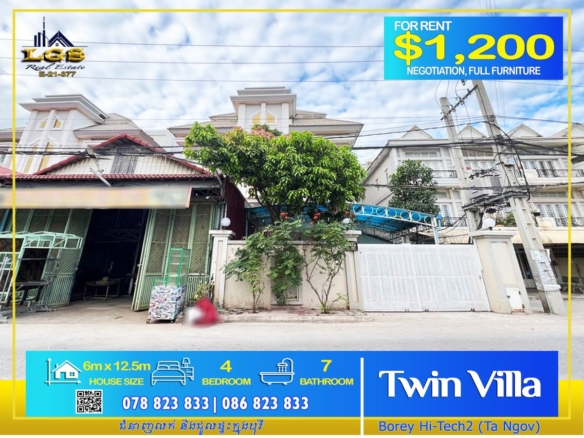 TWIN A VILLA FOR RENT AT BOREY PENG HOUTHH THE STAR MERA GARDEN