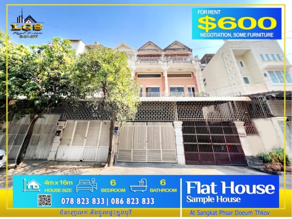 LINK HOUSE FOR RENT AT BOREY VILLA TOWN ,SAMDECH HUN SEN BLVD