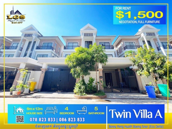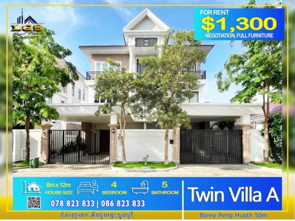 TWIN A VILLA FOR RENT AT BOREY PENG HOUTHH THE STAR MERA GARDEN