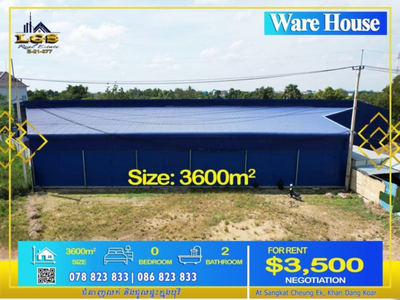 WAREHOUSE FOR RENT AT SANGKAT CHEUNG AEK