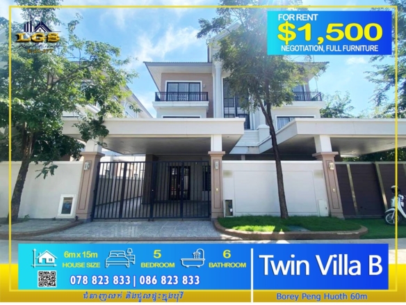 TWIN B VILLA FOR RENT AT BOREY PENG HOUTH THE STAR DIAMOND ST.60M